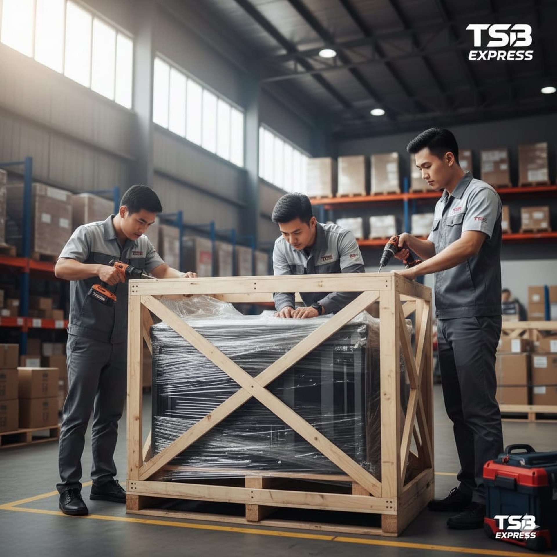TSB Express menyediakan Layanan Packing Kayu untuk memastikan barang Anda terlindungi maksimal selama proses pengiriman. Packing kayu sangat direkomendasikan untuk barang mudah pecah, bernilai tinggi, berat, atau berdimensi besar, baik untuk pengiriman jarak dekat maupun jarak jauh.